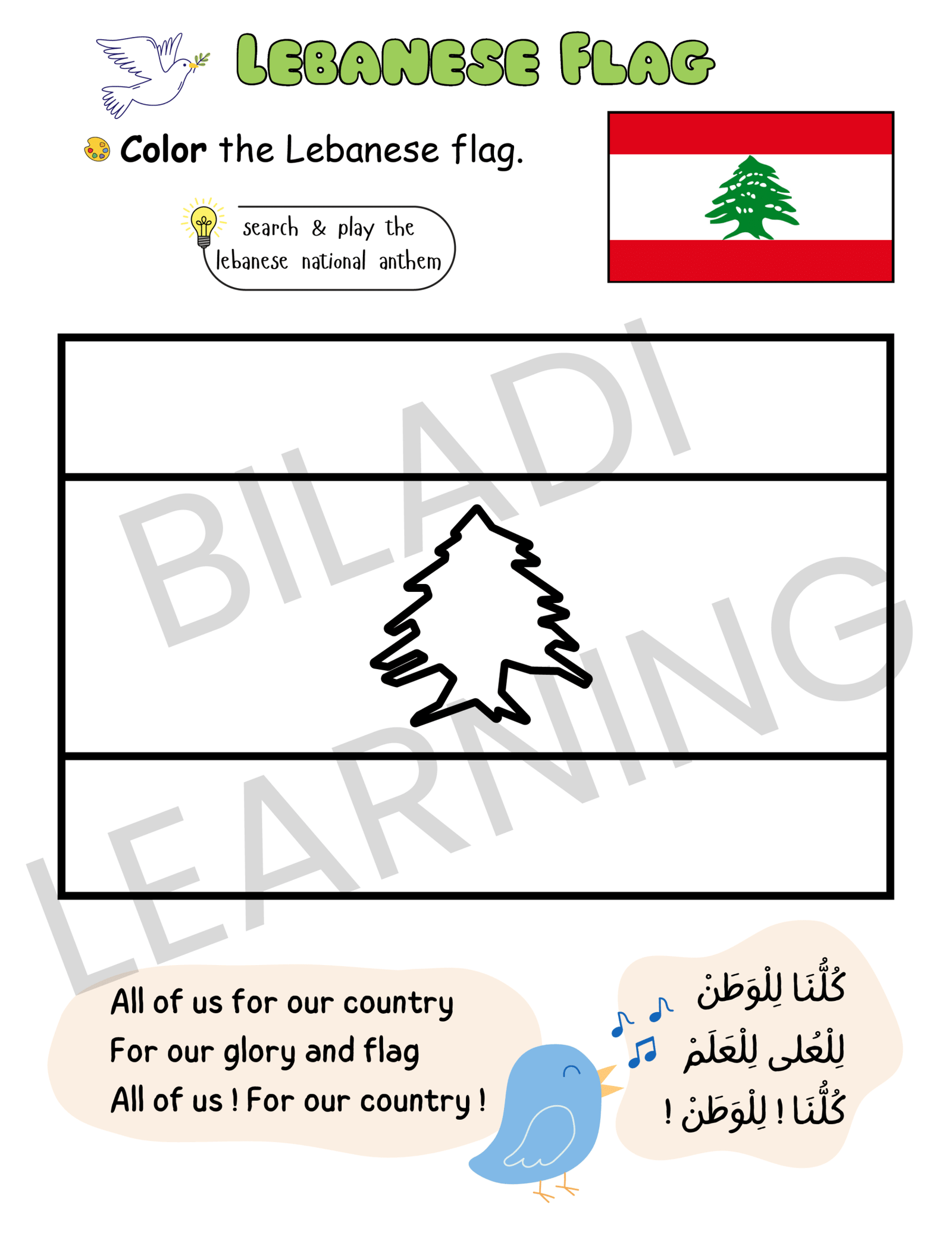 “Biladi Lebanon” activity book is a joyful journey of discovery designed to help children connect with their Lebanese roots! Through its colorful and engaging pages, little learners will explore Lebanon’s map, flag, capital, traditions, and so much more in a fun and meaningful way.